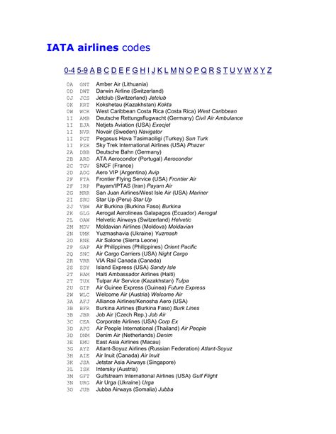 airline 2 letter codes